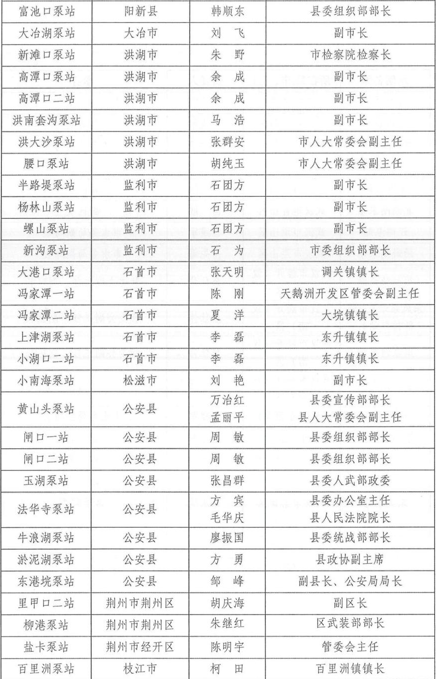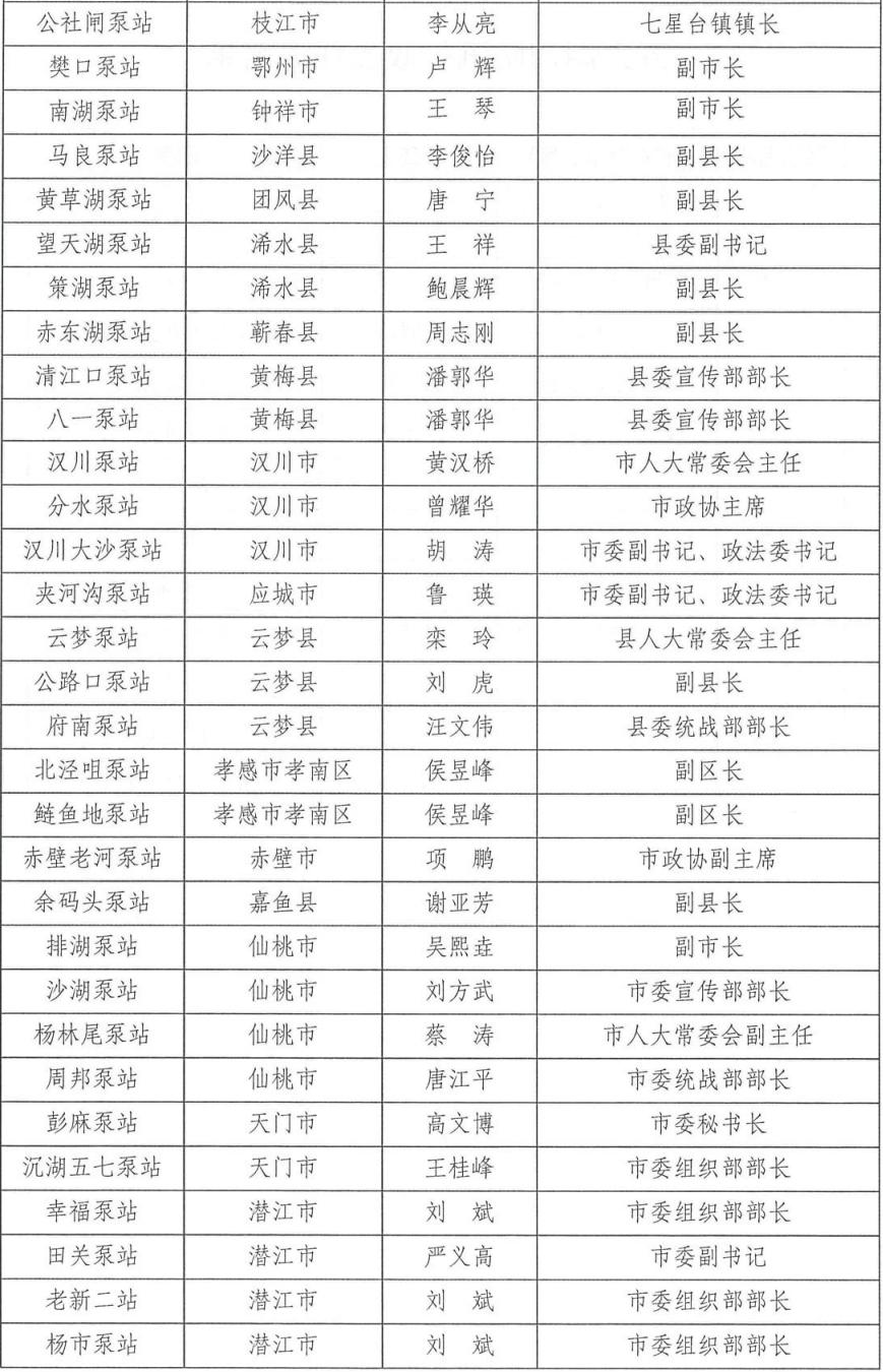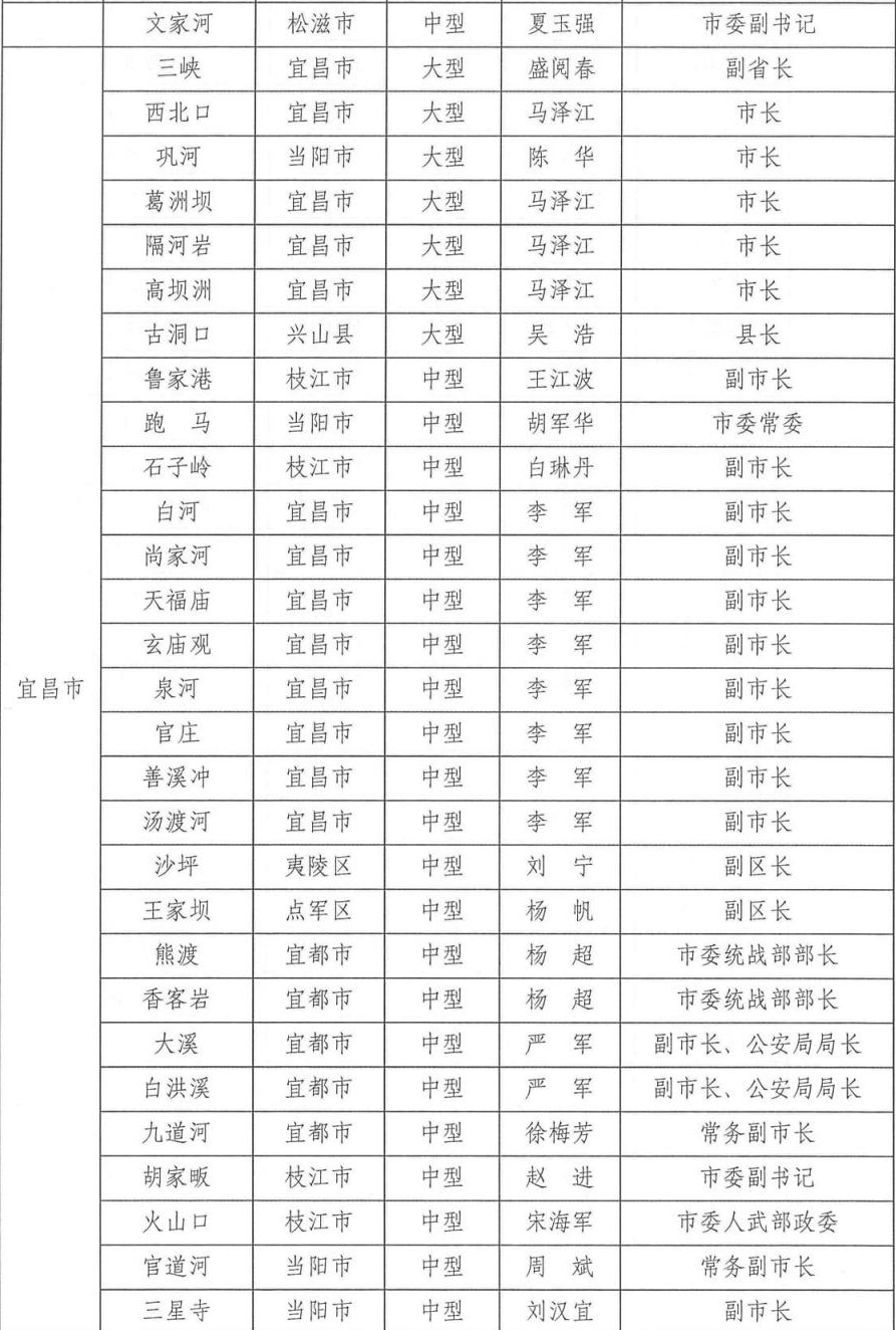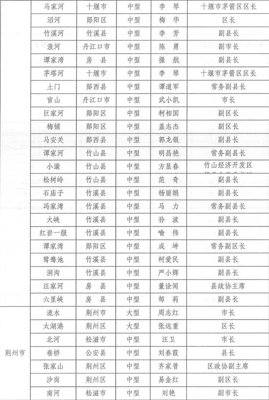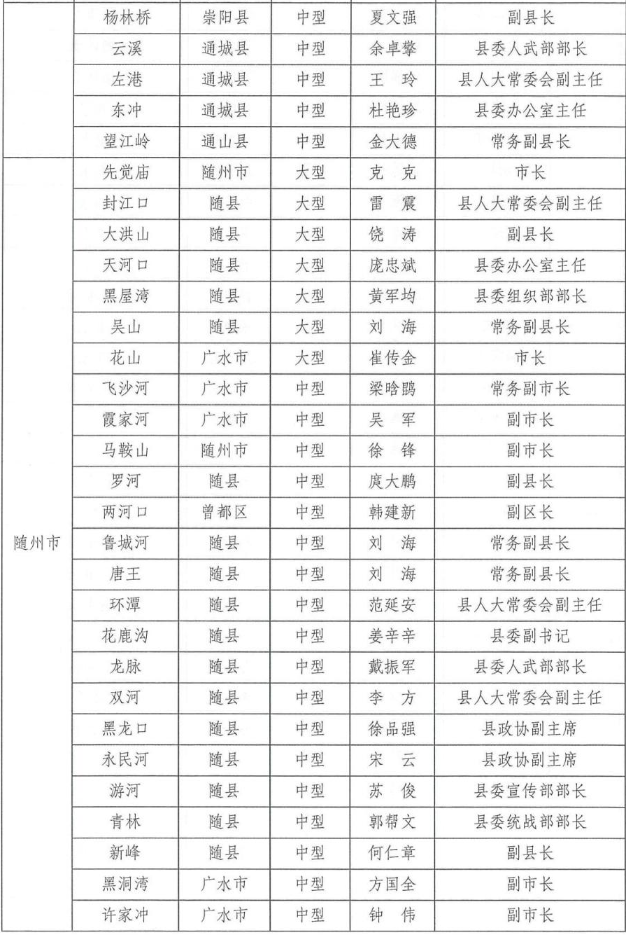 为切实做好2024年防汛抗旱工作,根据相关法律法规关于防汛抗旱工作实行各级人民政府行政首长负责制的规定,湖北省防汛抗旱指挥部通报2024年防汛抗旱行政责任人名单,包括全省防汛抗旱行政责任人,大江大河、大中型水库、大型水闸、主要蓄滞洪区、大型排涝泵站、五大湖泊及重点防洪城市防汛行政责任人名单。具体如下: