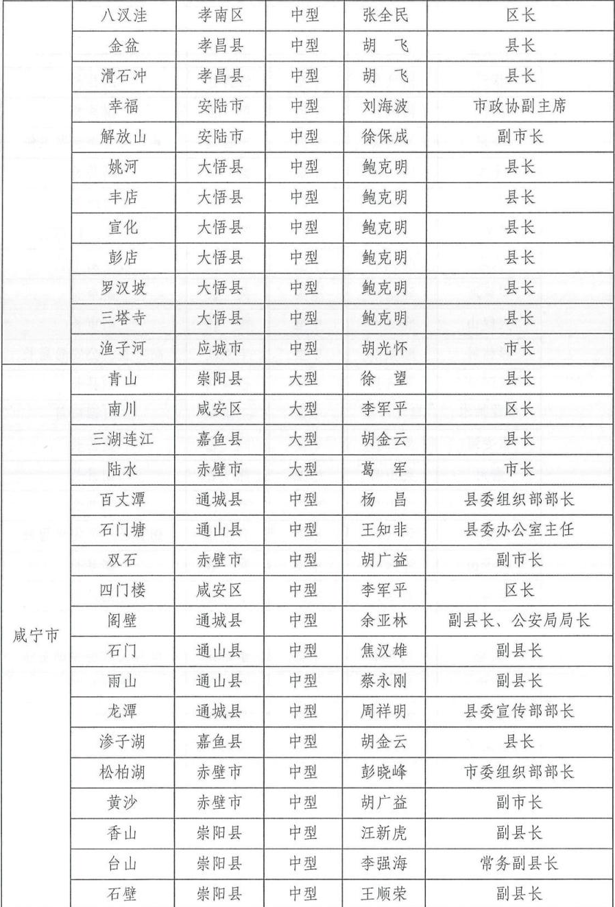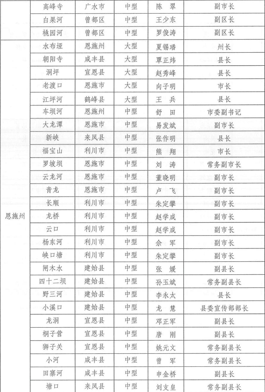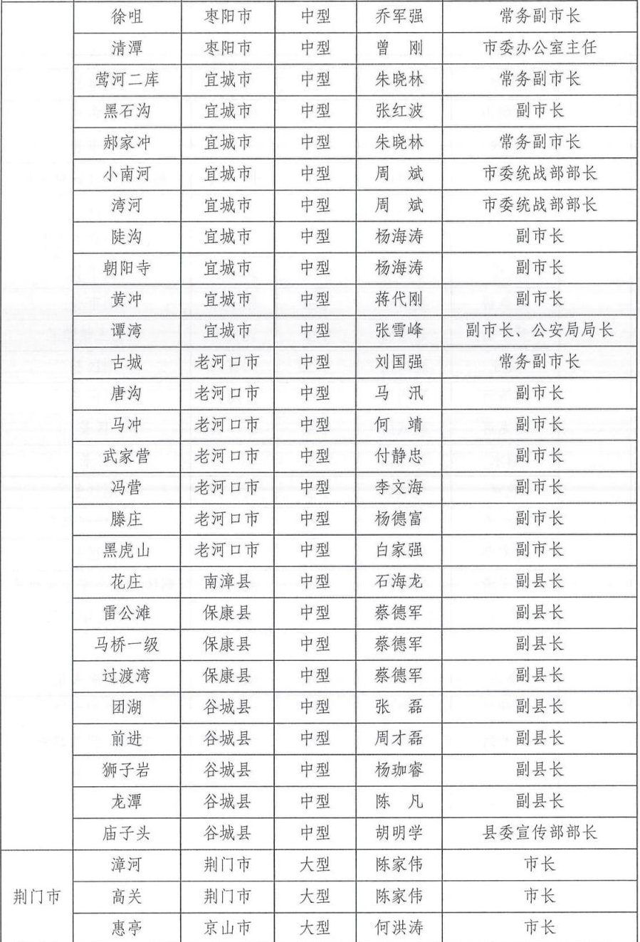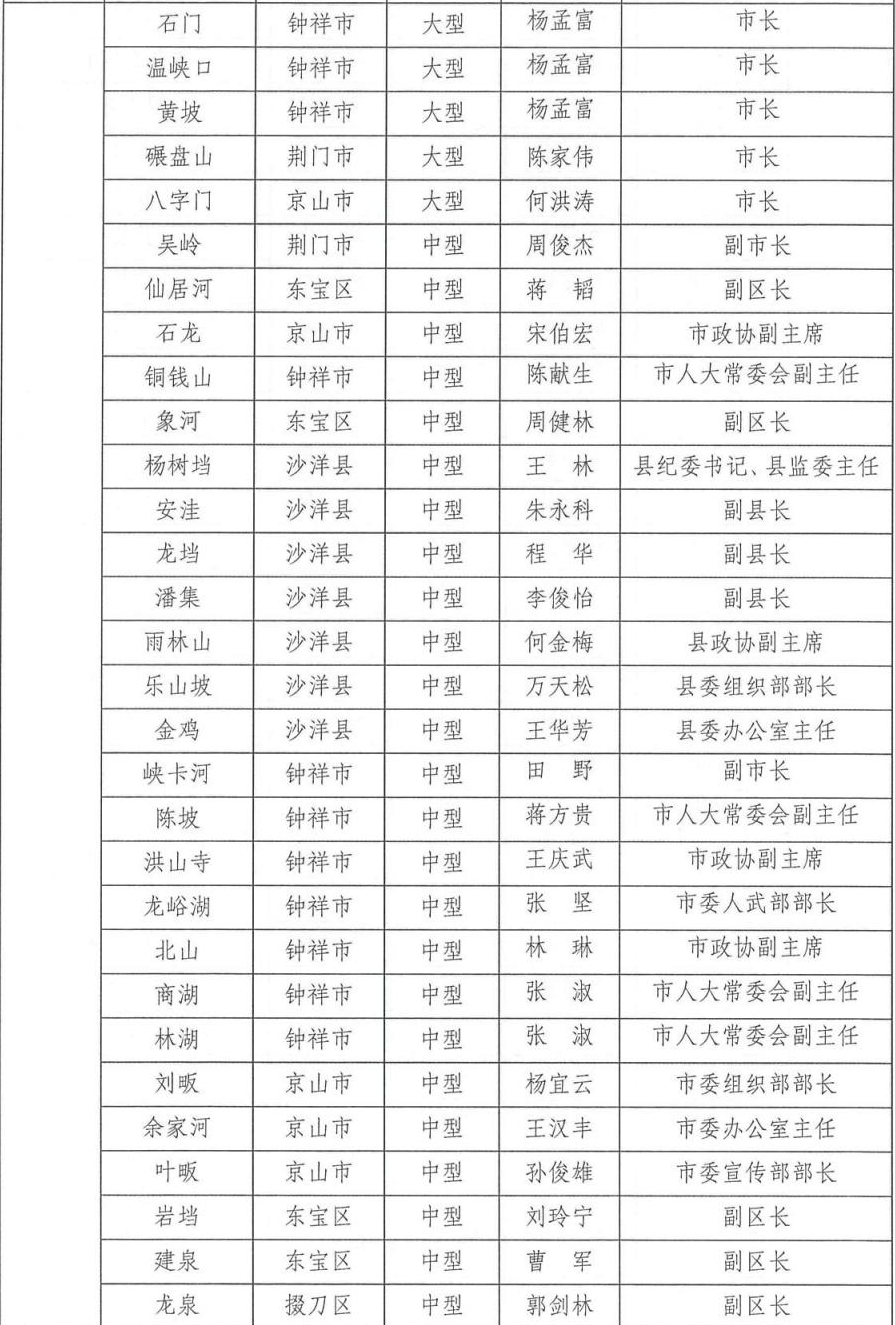 为切实做好2024年防汛抗旱工作,根据相关法律法规关于防汛抗旱工作实行各级人民政府行政首长负责制的规定,湖北省防汛抗旱指挥部通报2024年防汛抗旱行政责任人名单,包括全省防汛抗旱行政责任人,大江大河、大中型水库、大型水闸、主要蓄滞洪区、大型排涝泵站、五大湖泊及重点防洪城市防汛行政责任人名单。具体如下: