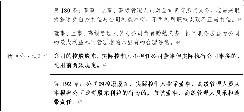 1.我国的实质董事规则将规制主体限定于公司的实际控制人、控股股东