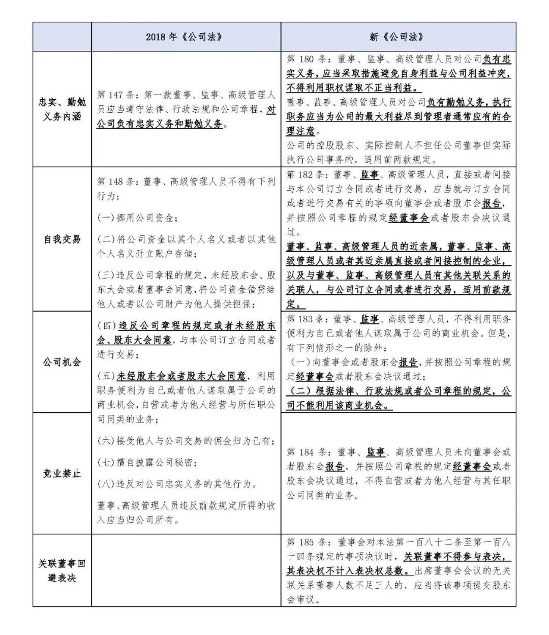 (3)就竞业禁止,除与其他忠实义务的限制性规定保持一致外,相比于《公司法(草案一)》、《公司法(草案二)》中“不得自营或者为他人经营与本公司存在竞争关系的同类业务”,新《公司法》删除了“存在竞争关系”的限定语。不在立法层面对是否存在竞争关系进行实质判断,要求董事经营同类业务均需履行报告、批准程序。